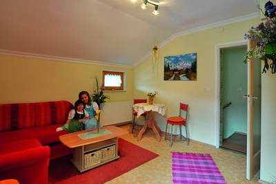 Wohnzimmer mit Sitzgruppe, zusätzlicher Liege