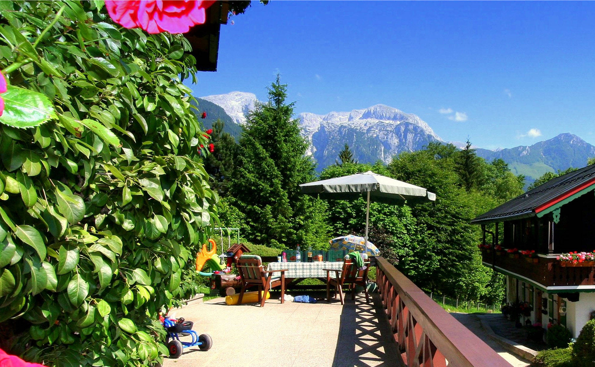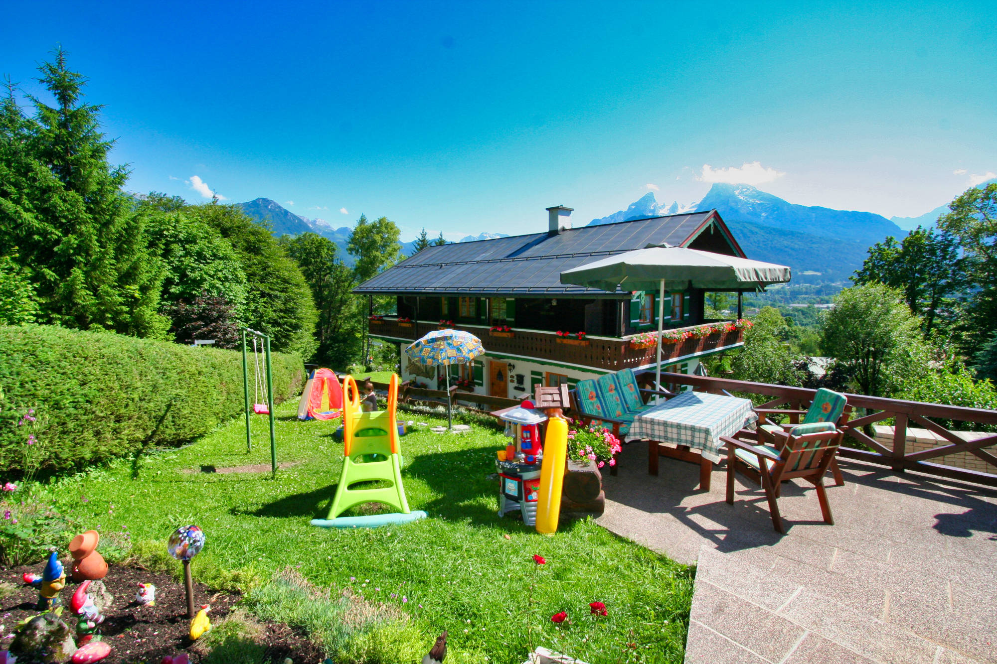 Unser Haus befindet sich in ruhiger, sonniger Lage am Kälberstein mit herrlichem Blick auf das gesamte Berchtesgadener Bergpanorama.