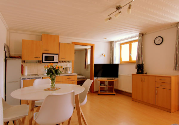 Unsere Fewo wurde 2021 neu renoviert, hat einen separaten Eingang, sowie eine Terrasse mit Sitzgelegenheit. Sie verfügt über einen Wohnraum mit Küchenzeile, Couch, SAT-TV und Radio, Dusche/WC, Schlafzimmer, kostenloses WLAN und Kfz-Stellplatz.