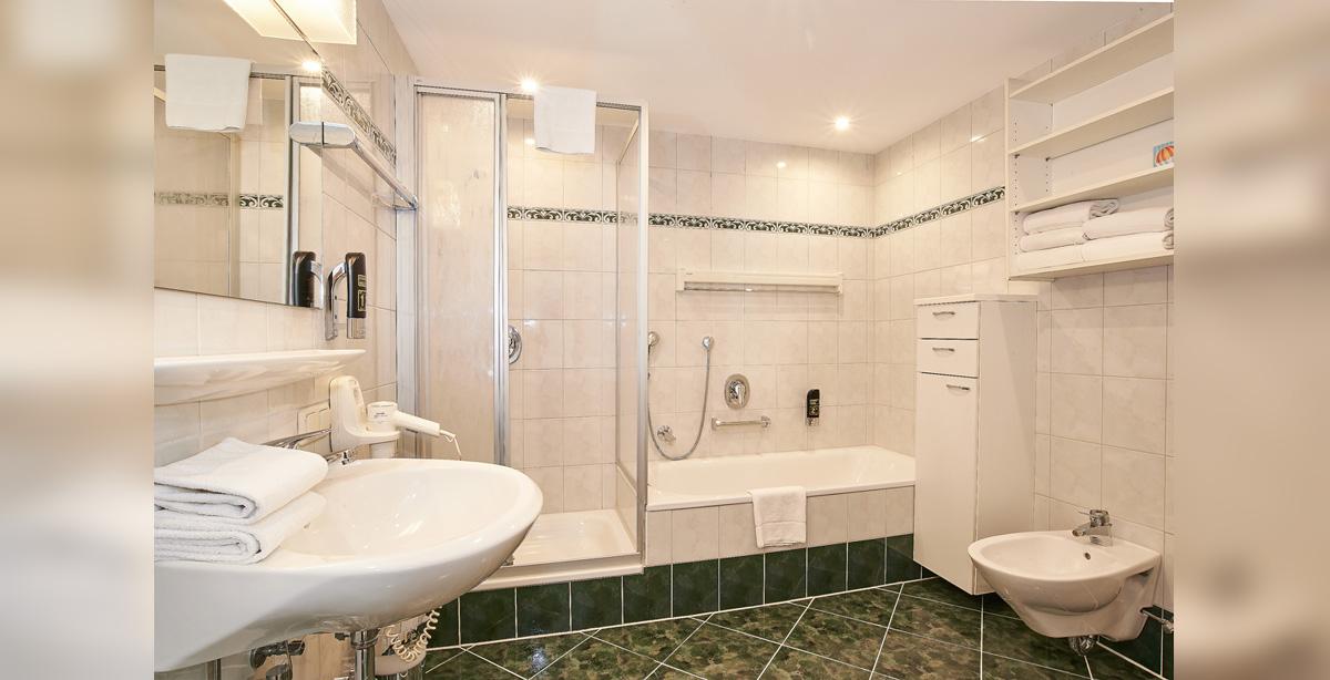- Großzügiges Badezimmer mit Badewanne und separater Dusche, WC, Bidet und Haarföhn